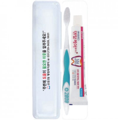 | 기타사항 | (종이케이스별도 100원) •Size : 200x45x30㎜ •안티프라그치약50g,2080칫솔 ※구성품 교체 가능 / 칼라인쇄시 100원추가 |
