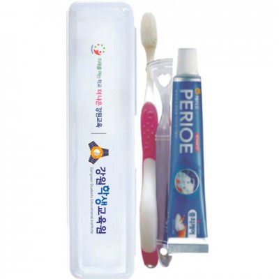 | 기타사항 | (종이케이스별도 100원) •Size : 200x45x30㎜ •페리오치약50g,국산칫솔,혀크리너 ※구성품 교체 가능 / 칼라인쇄시 100원추가 |