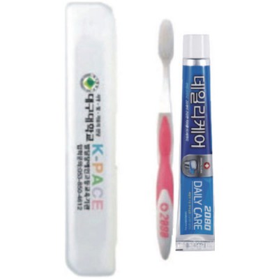 | 기타사항 | (종이케이스별도 100원) •Size : 200×40×30㎜ •2080치약50g,2080칫솔 ※구성품 교체 가능 / 칼라인쇄시 100원추가 |